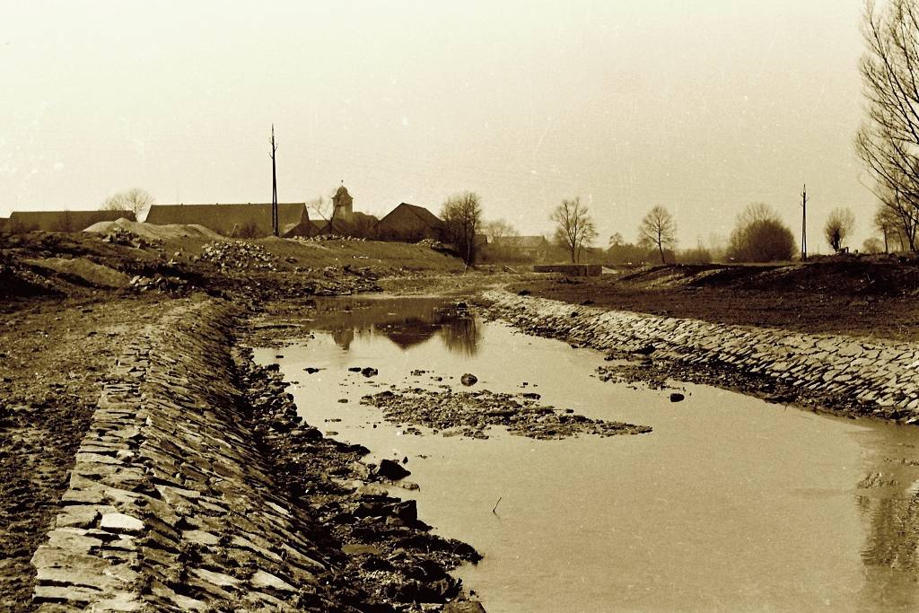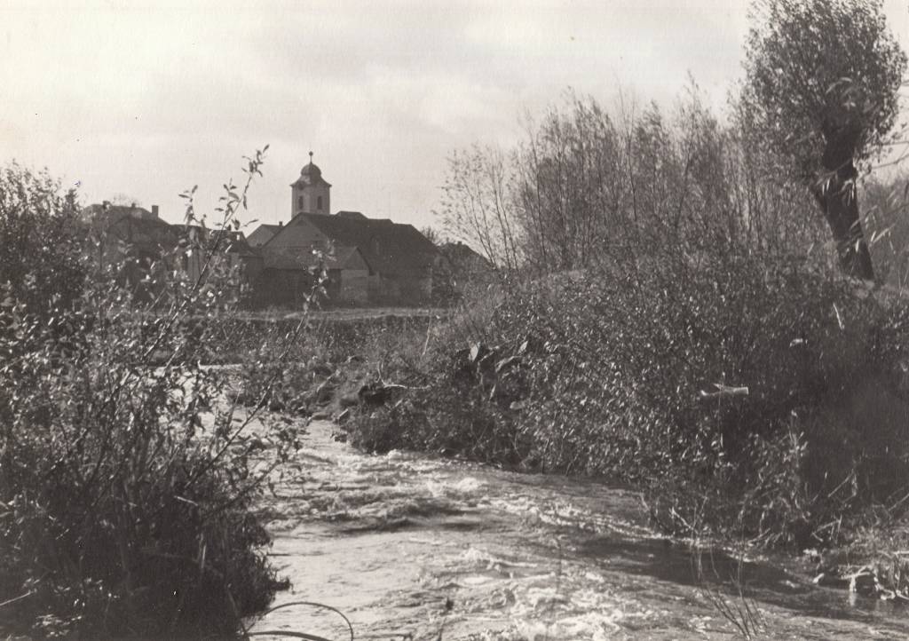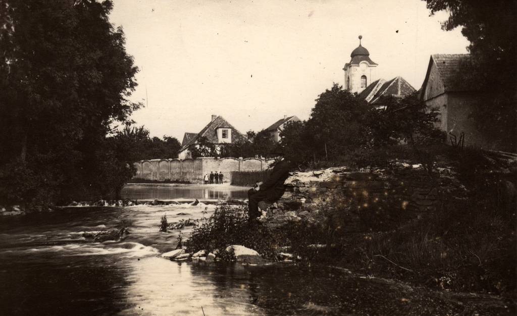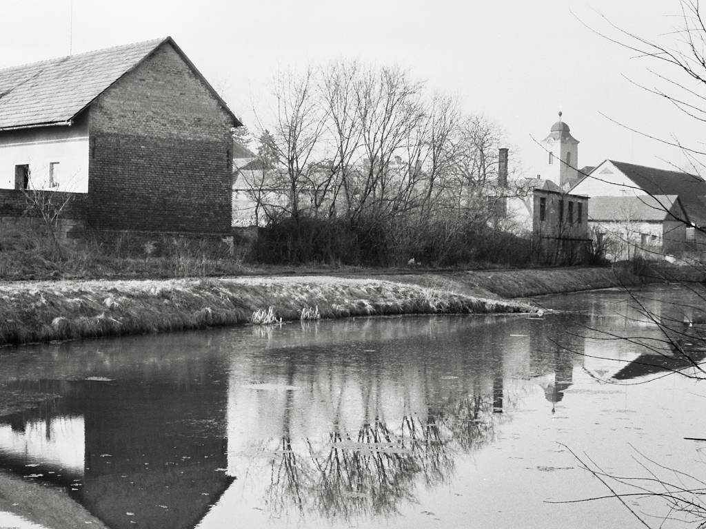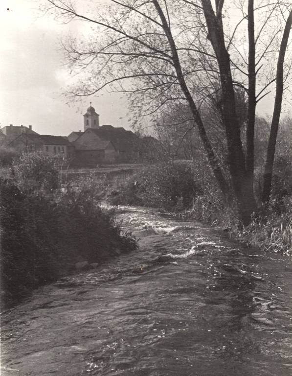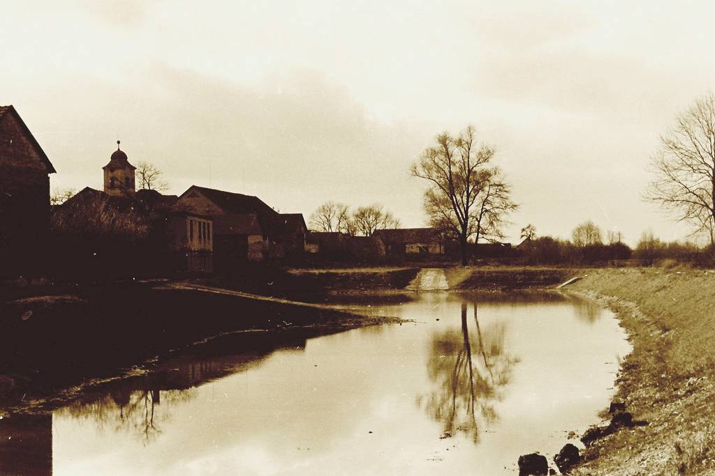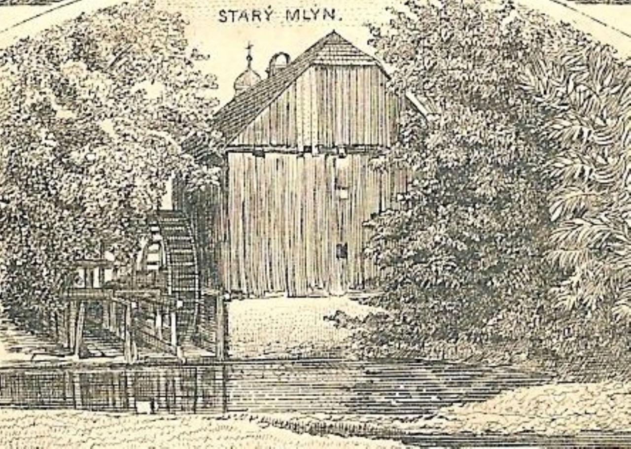 Obrázky mlýna, říčky Cidliny a její regulace