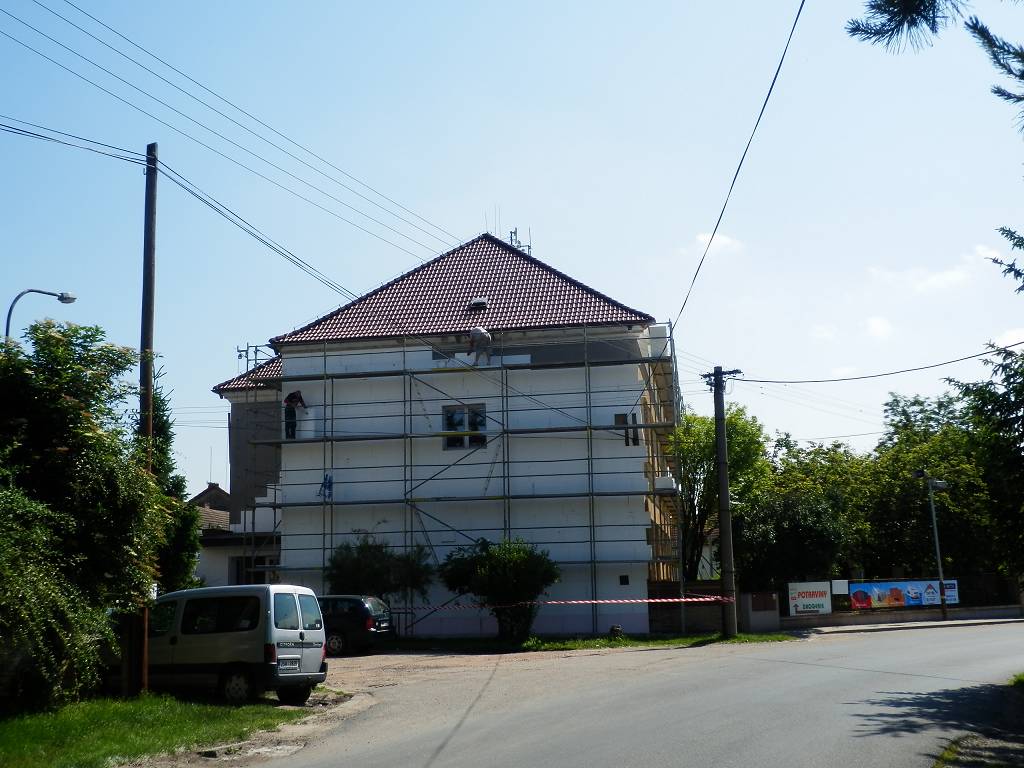 Práce na opravě pláště budovy začaly 20. 3. 2014 výměnou střešní krytiny, dále došlo k zateplení stropů z půdy, výměně všech oken i vchodových dveří, byla provedena tepelná izolace zdí a nabarvení fasády světlounce okrovou s hnědým soklem. Práce byly ukončeny do konce července 2014. Rekonstrukce budovy byla hrazena z dotace z Operačního programu životního prostředí a další obecní budova zazářila novotou. V roce 2016 byly vybudovány nové chodníky.