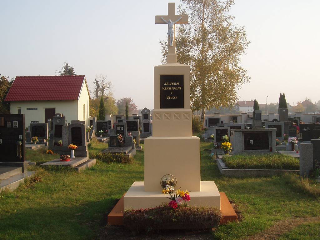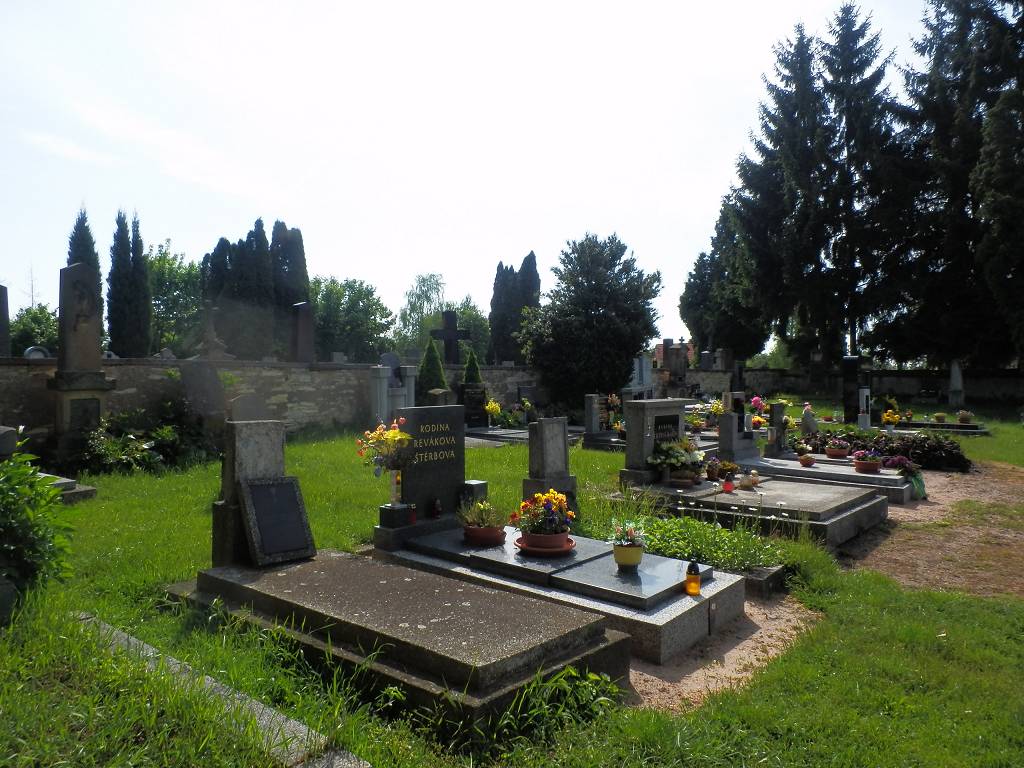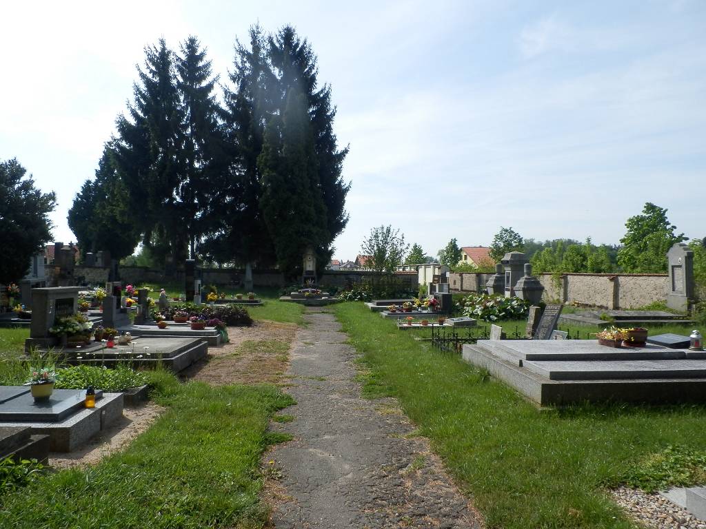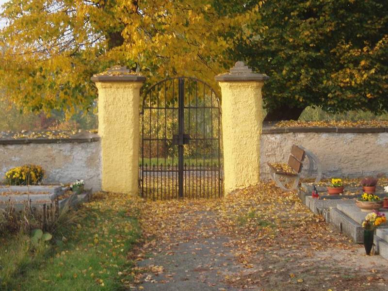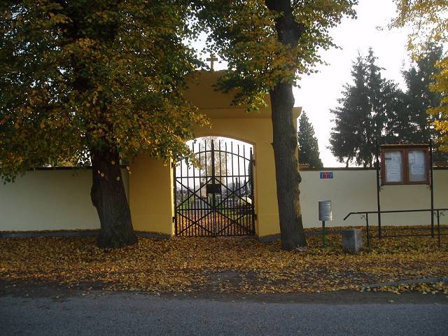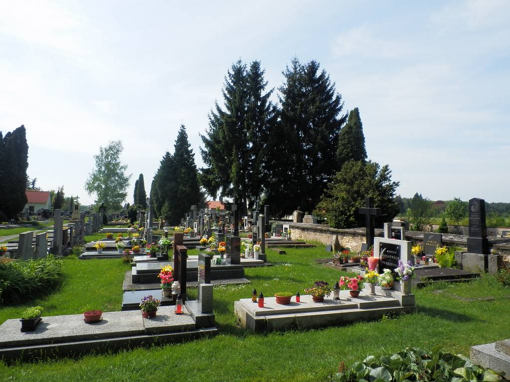 Dříve byl hřbitov kolem kostela, ale od započetí přestavby kostela v r. 1824 se tam přestalo pochovávat a byl zřízen hřbitov nový za vsí.