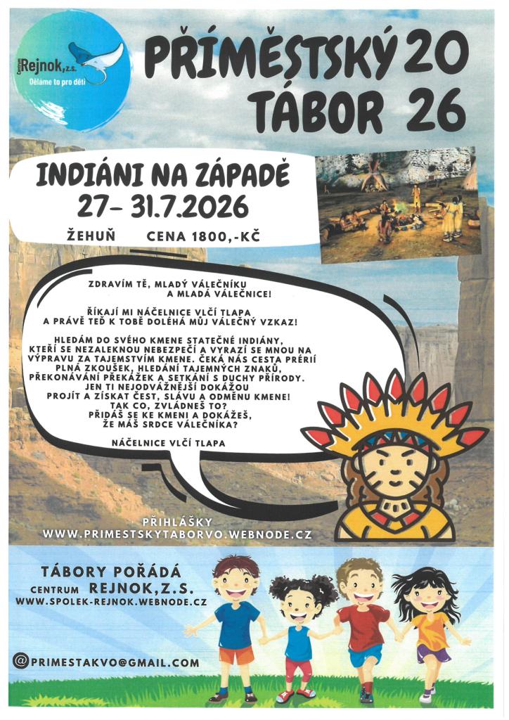 Děti se během týdne vydají na dobrodružnou výpravu inspirovanou životem indiánských kmenů, budou plnit úkoly, hledat tajemné znaky a zažívat spoustu her a zkoušek odvahy.
