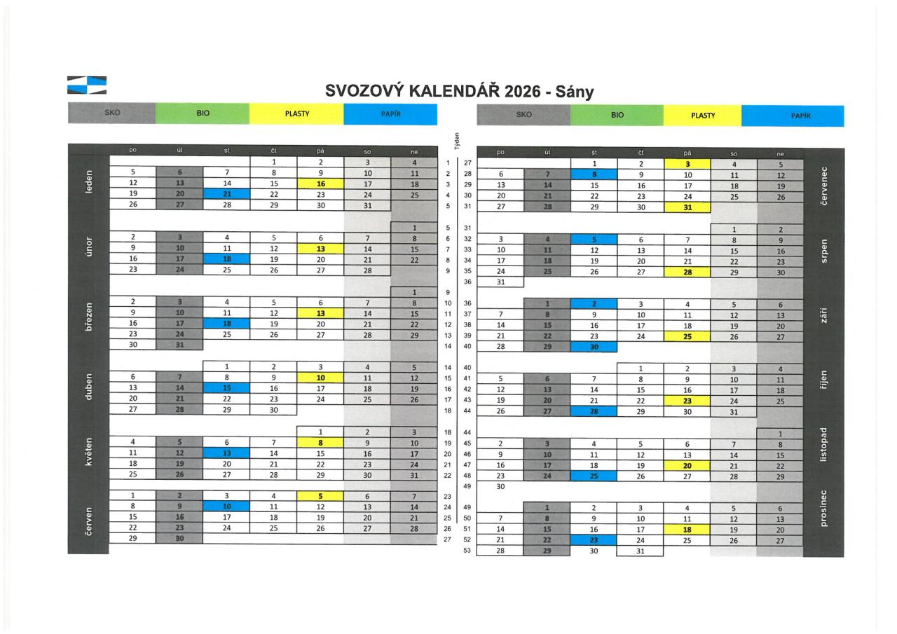 Svozový kalendář 2026 - Sány