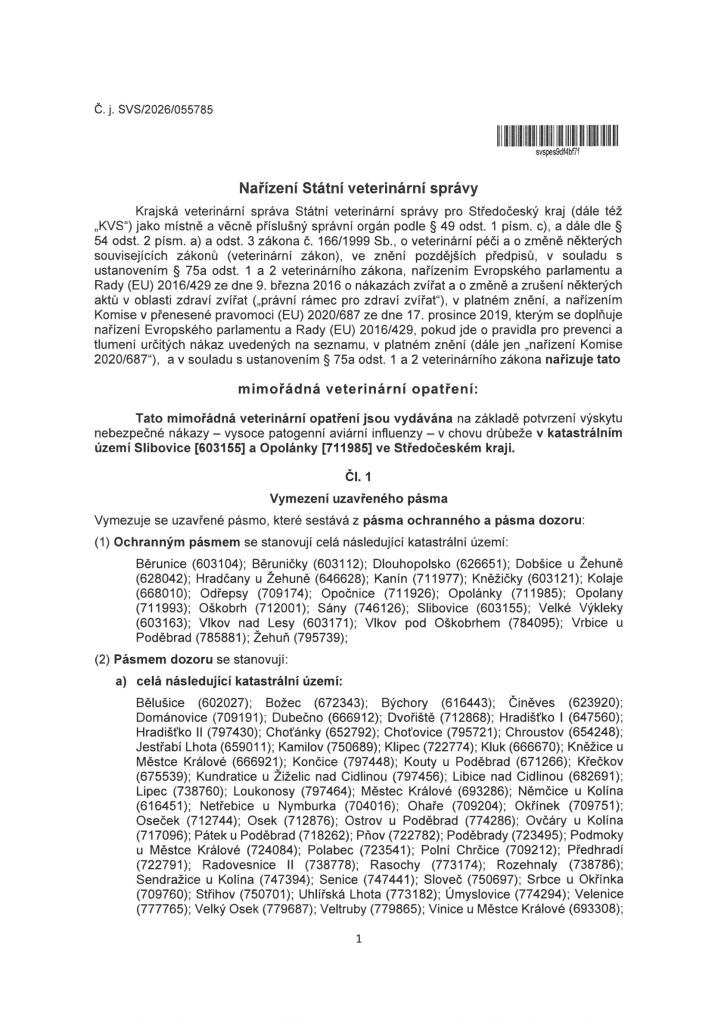 Vzhledem k výskytu ptačí chřipky v Opolánkách žádáme občany o zvýšenou opatrnost.