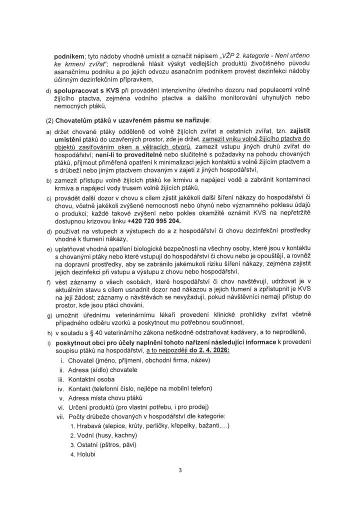 ‼️ Při zvýšeném úhynu nebo podezření ihned kontaktujte veterinární správu na nepřetržitě dostupnou krizovou linku 720 995 204.