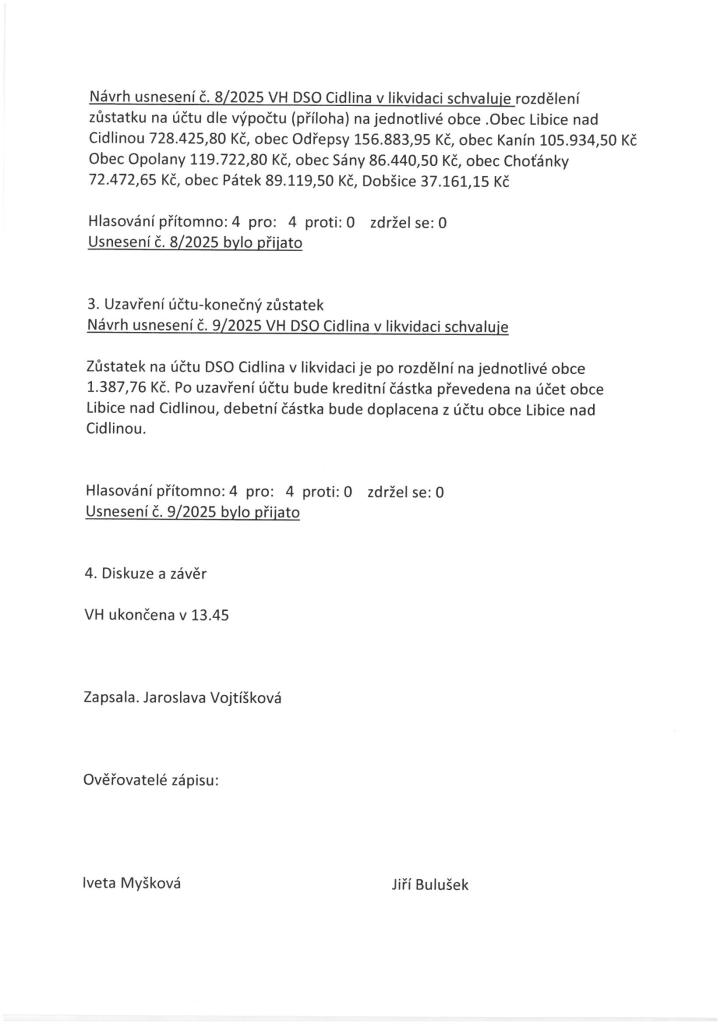 Zápis z valné hromady DSO Cidlina